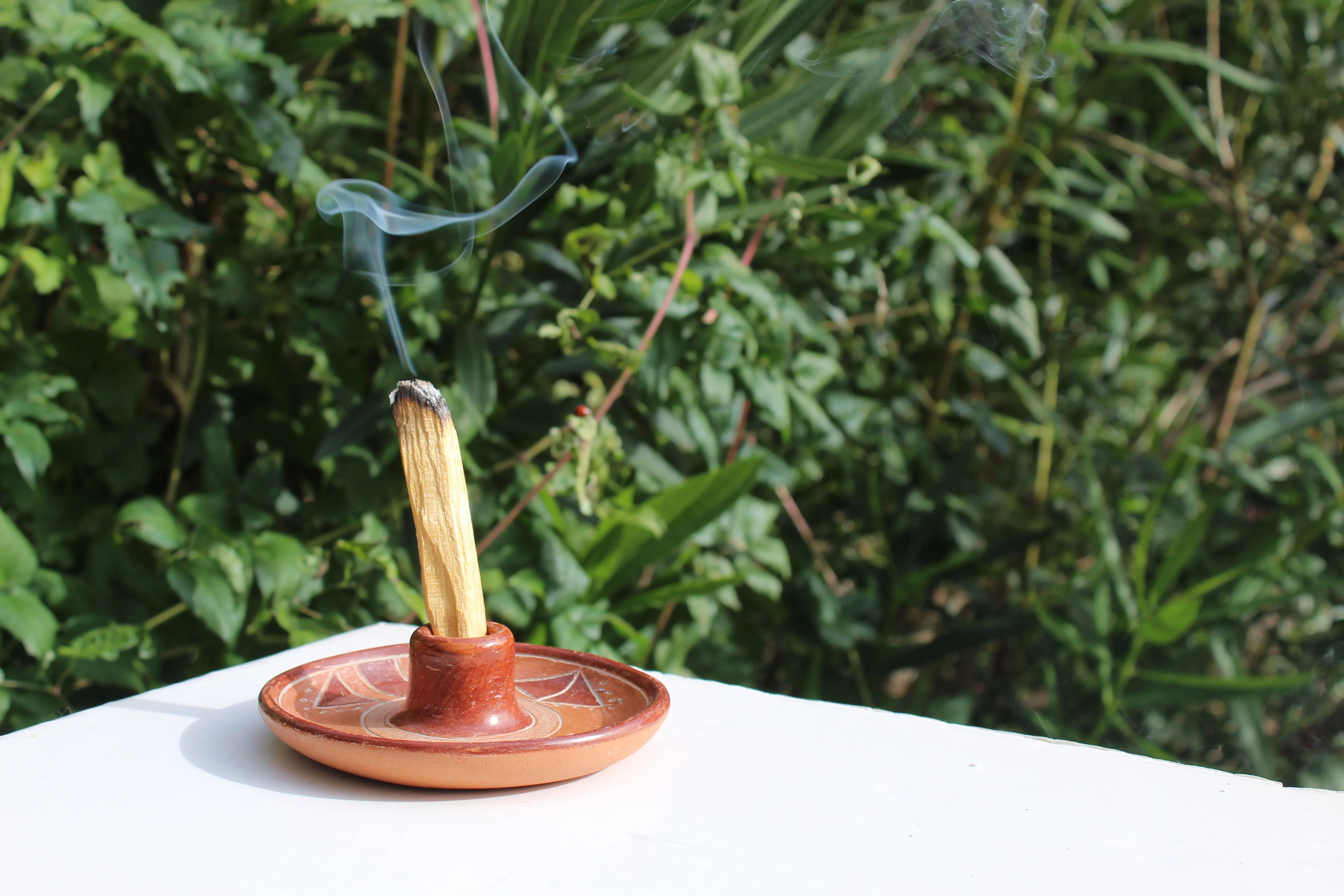 Handcrafted terracotta stick holder: an elegant and practical support to place the Palo Santo wooden stick on once lit.