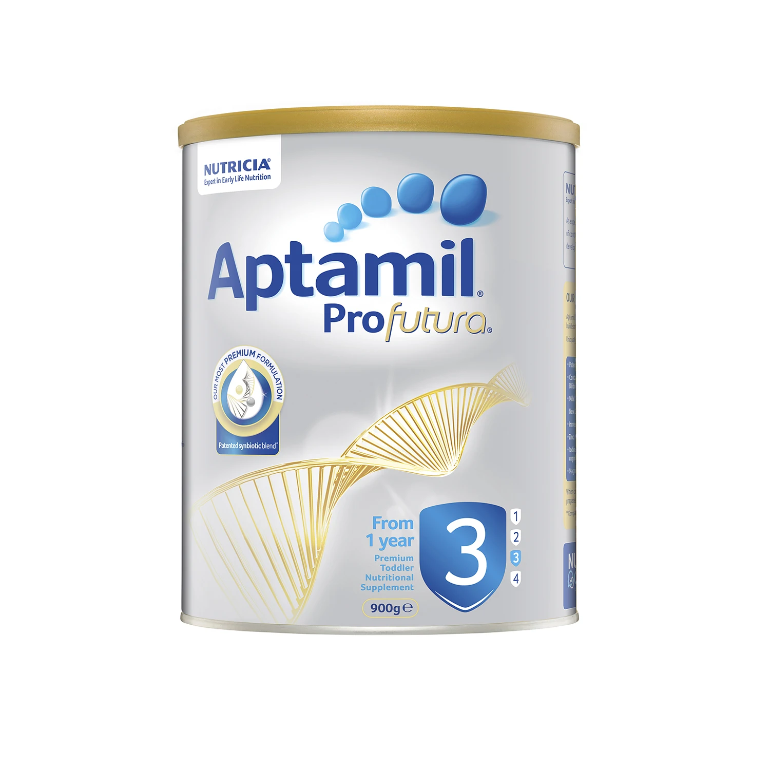 Карбонат кальция, l-триптофан, пантотеновая кислота, медный сульфат, витамин А, тиамин, витамин D3, рибофлавин, витамин В6, марганцевый сульфат, фолиевая кислота, йодид калия, витамин К1, селенит натрия, биотин, витамин B12. Лактоза из молока, растительных масел, сывороточных продуктов из молока, обезжиренного молока, галакто-олигосахаридов из молока. |