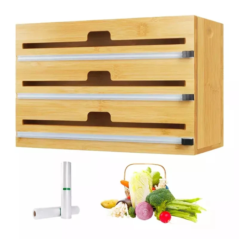 Бамбуковый настенный ящик для хранения дистрибьютор упаковки кухонный органайзер из фольги и