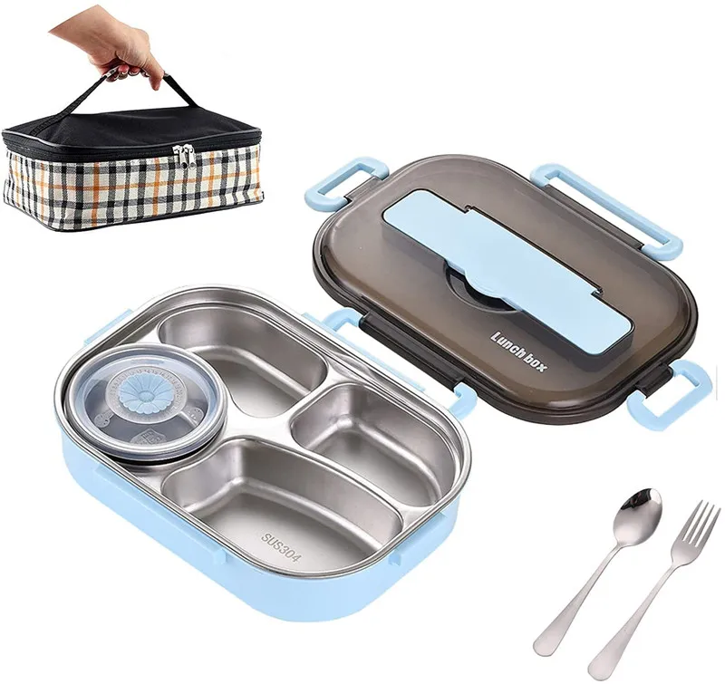 Ланч-бокс из нержавеющей стали контейнер для хранения еды с 4 отсеками коробка бенто безопасный посудомоечной машины.