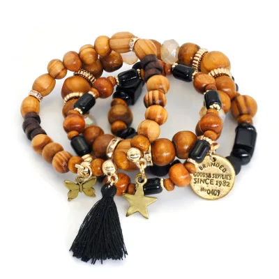 Бусины для ювелирных украшений VRIUA, черный драгоценный камень, кисточка, многослойный браслет, браслет-бабочка со звездой