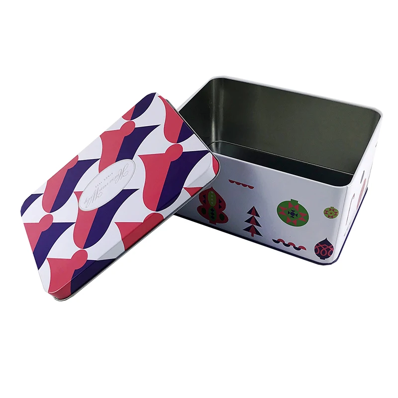 Оловянная металлическая коробка для конфет, печенья, прямоугольная коробка для шоколада, индивидуальная Подарочная реклама с принтом, недорогая Подарочная жестяная банка для печенья