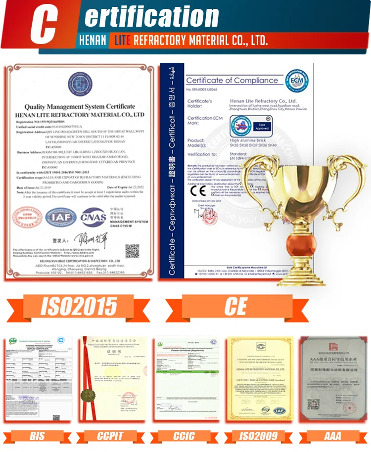 Refractoriness | ≥1750 | ≥1770 | ≥1790 | ≥1790 | ≥1790 | ||||
