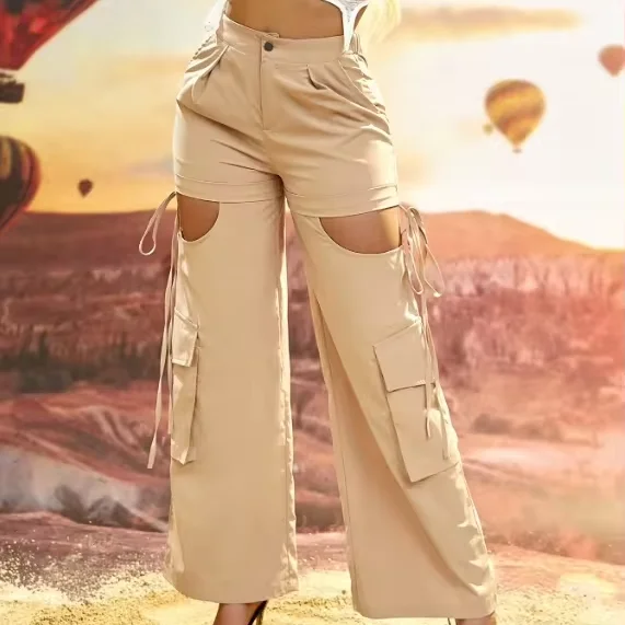 Пользовательские хлопчатобумажные полиэфирные брюки с широкими штанинами и карманами для женщин
