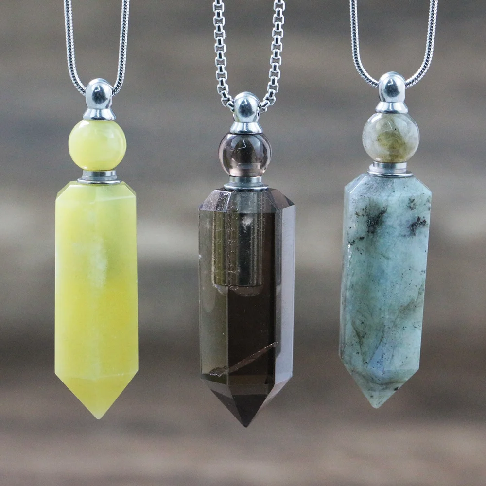 Женское Ожерелье с фантастическим драгоценным камнем в виде флакона духов с серебряной цепочкой, зеленым нефритом/ladradorite/кулон с дымчатым кварцем