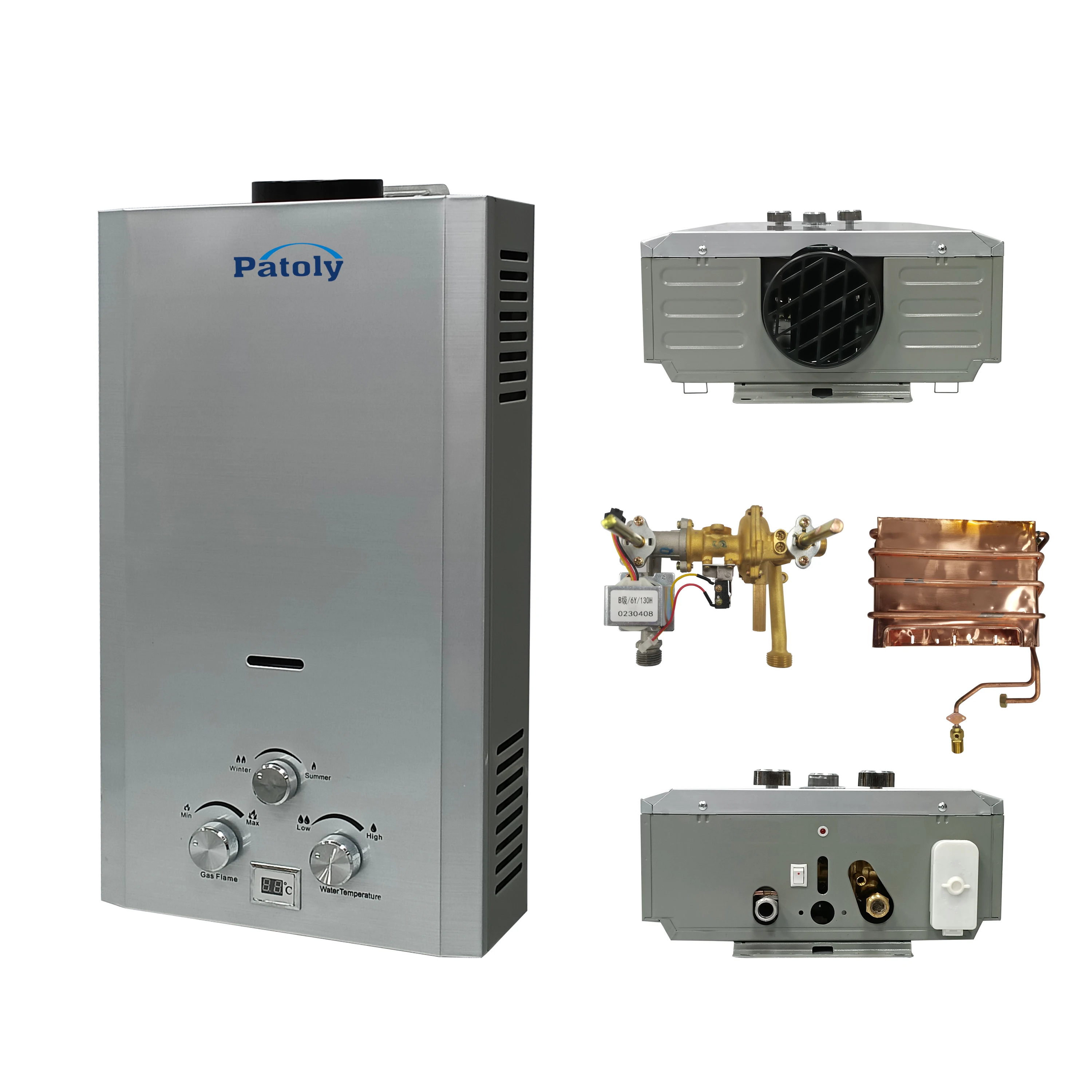 Ультратонкий газовый водонагреватель из нержавеющей стали классический серебристый корпус Чистый медный теплообменник изготовленный дымового водонагревателя