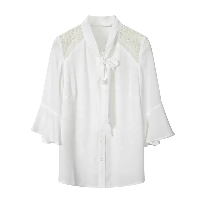 Летние женские белые шифоновые блузки с расклешенными рукавами