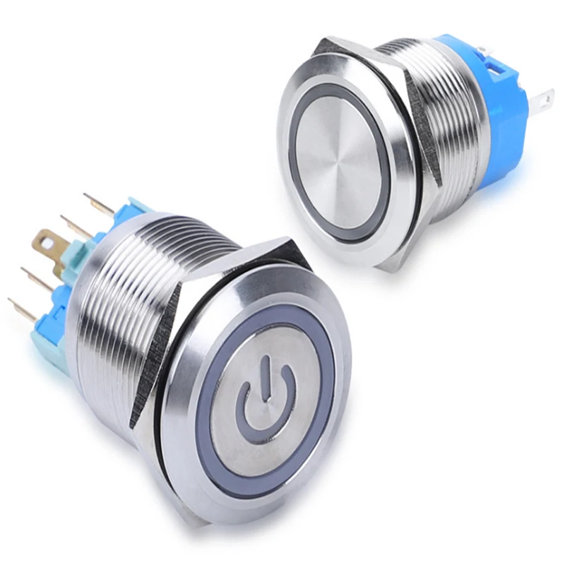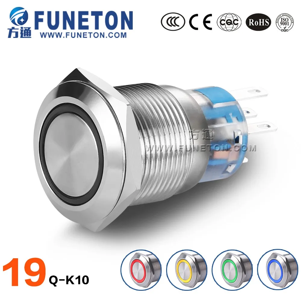 Металлический Электрический металлический мини-светодиодный кнопочный переключатель для отеля, 19 мм, 6 вольт