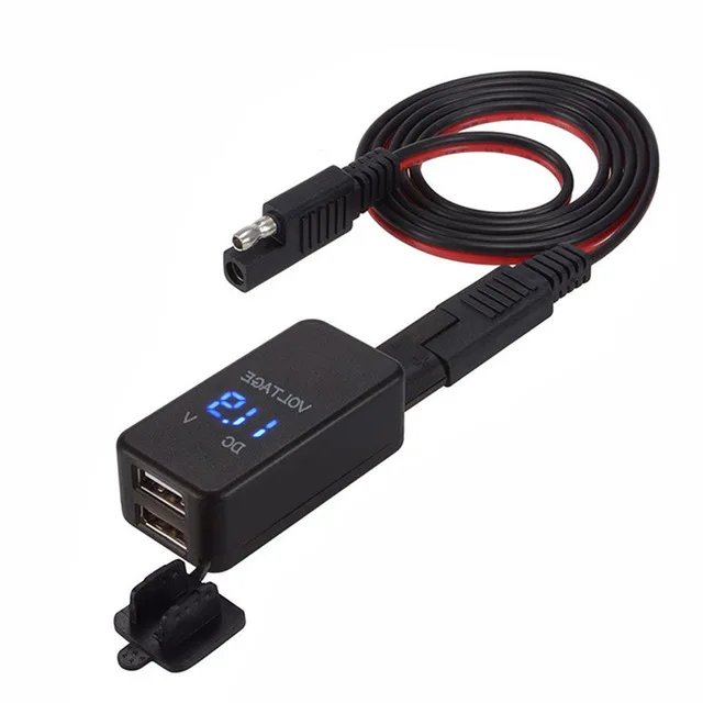 4.2A двойной usb адаптер SAE разъем с синий светодиодный вольтметр с 2 pin-кабели