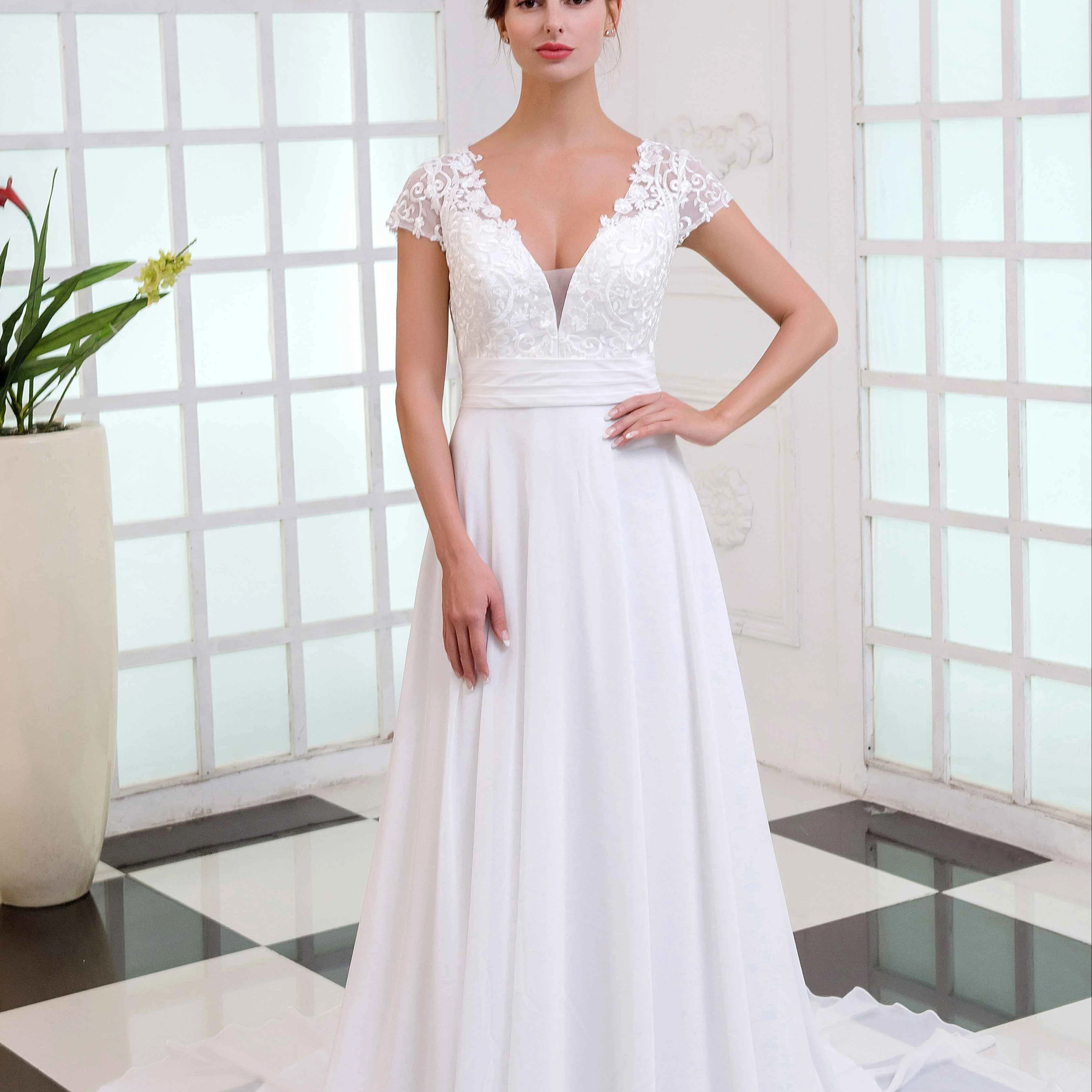 Экологичное кружевное платье с коротким рукавом, свадебное платье до пола, свадебные платья, поставщик из Китая