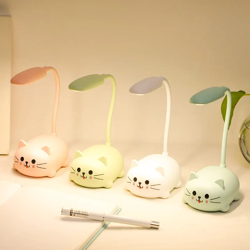 Настольная Светодиодная лампа для защиты глаз от детей, мультяшный милый питомец, медведь, свинка, кошка, собака, питание от аккумулятора, теплый белый свет