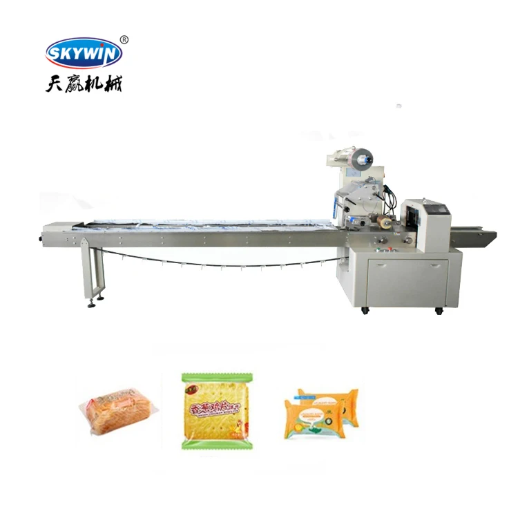 Skywin Three Servo Motor Wrapper Biscuit Cookies Package Machine Flow Pack
