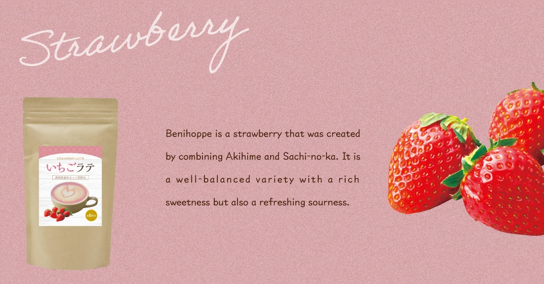Strawberry | 100g | Strawberry: Food made mainly from milk (lactose, whole milk powder, vegetable oil and fat, sweetened nonfat condensed milk, dextrin, etc.) (manufactured in Japan), flavor enhancer, sugar, strawberry powder, lactose / flavoring, acidulant, colorant (beets), sweetener (stevia), (contains some milk ingredients and soybeans) | milk, soybeans | 12 months | powder |