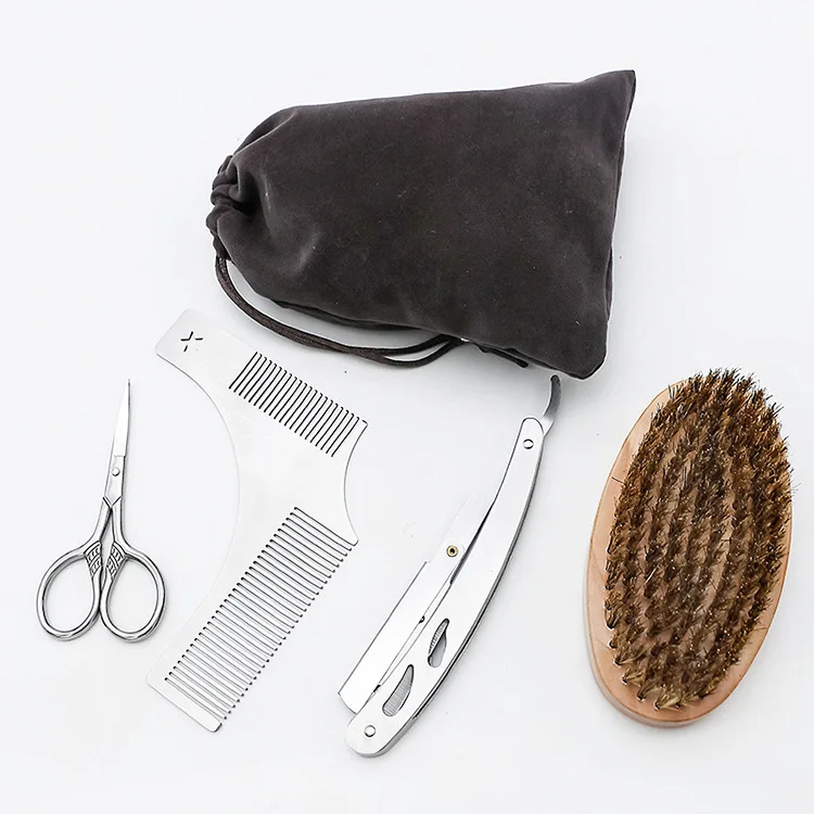 Пользовательский логотип, уход за бородой, кисть для роста, ножницы, набор для бороды для мужчин