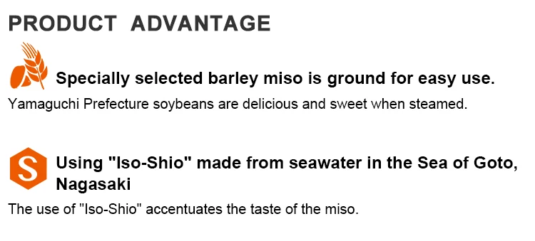 Ingredients | Barley (Yamaguchi product),Naked barley (Yamaguchi product) , soybeans (Yamaguchi product), salt (Japan) / Alcoholic beverages, seasoning (amino acids, etc.), V.B2 | ||||||