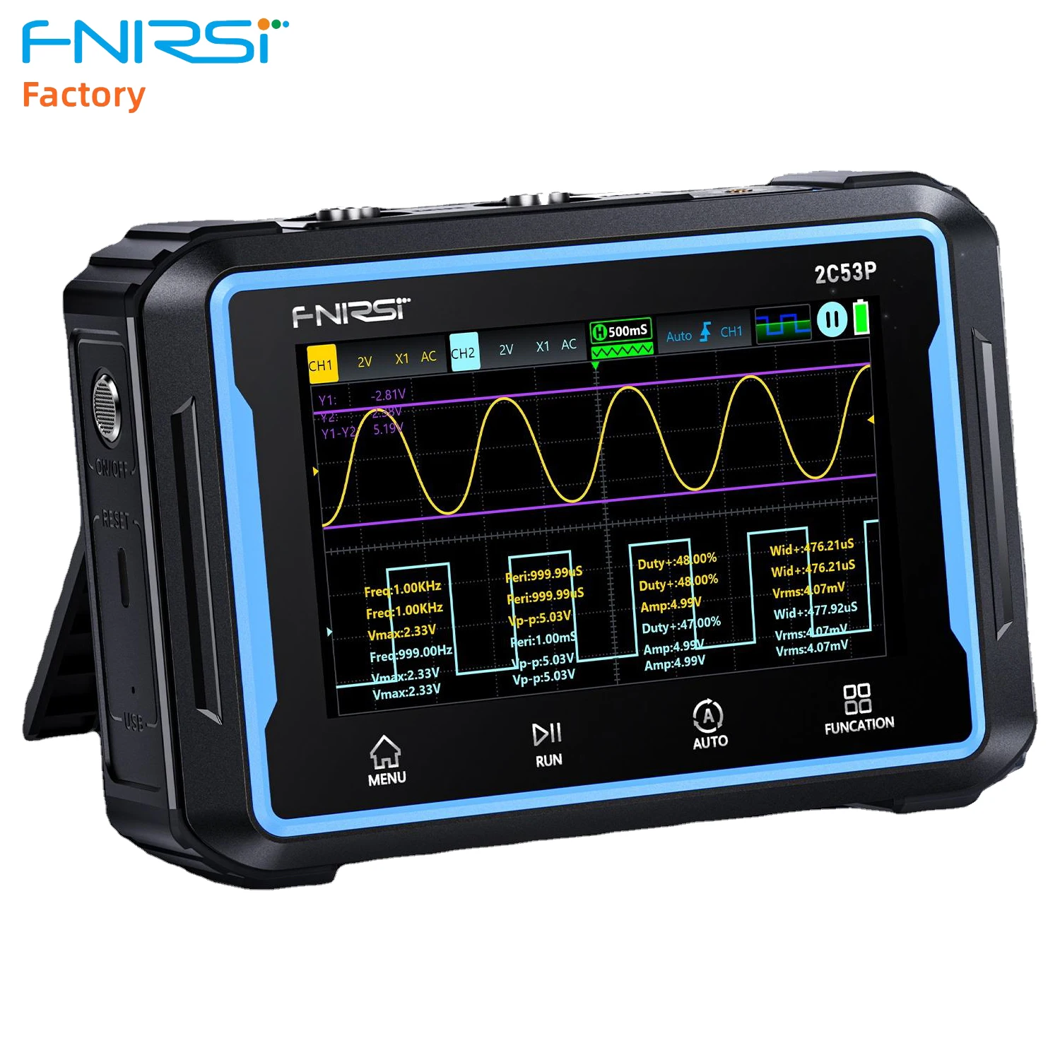 Новый цифровой осциллограф Fnirsi 2C53P, частота дискретизации в реальном времени 50 мГц, двойной канал 250MSa/s 4,3 дюймов, большой экран 3 в 1 мультиметр