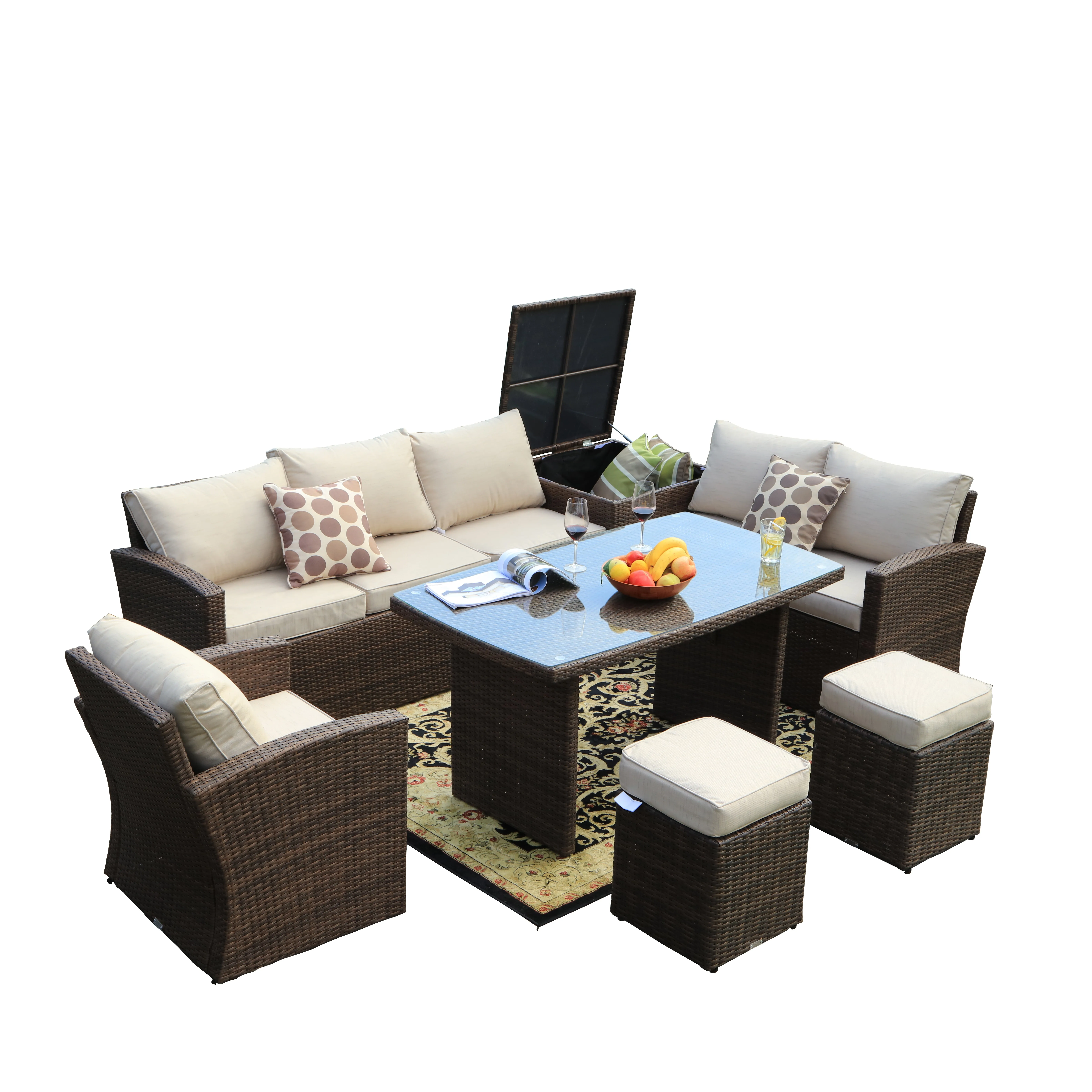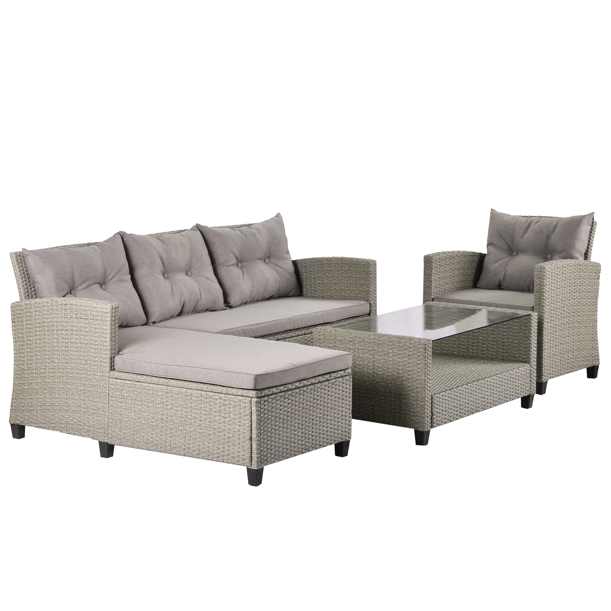 Materials | Finish | Woven with PE rattan; Powder coating aluminum | |||