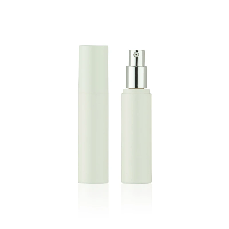 Простая в эксплуатации 15 мл 30 мл пластиковая белая ПП круглая безвоздушная бутылка с алюминиевым распылителем