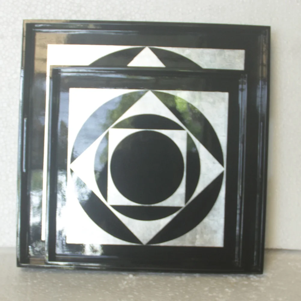 Набор из 2 квадратных лаковых лотков с ручками, выполненных в морском стиле, цвет черный и серебристый