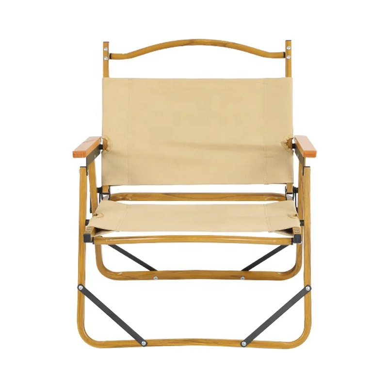 Оптовая продажа, маленький компактный складной стул для кемпинга и пляжа из алюминиевого сплава с текстурой древесины под заказ