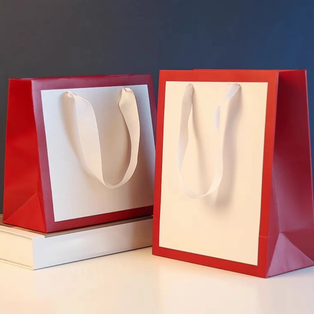 Индивидуальный мини-логотип роскошный маленький бизнес элегантная розовая лента для одежды бумажные подарочные пакеты с логотипами