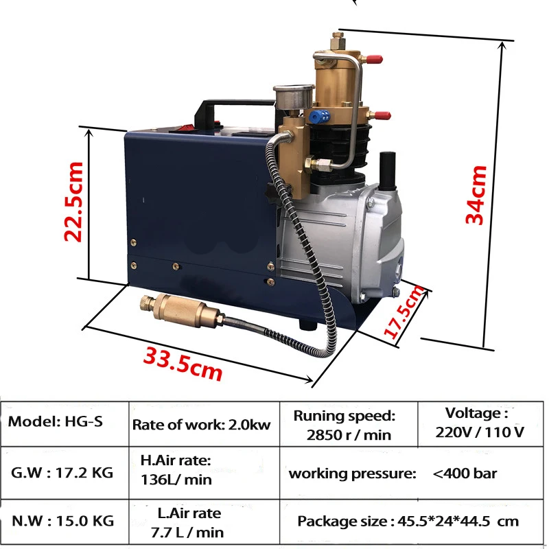 Воздушный компрессор PCP 4500 psi высокое давление 310 бар 220 В/110 В автоматическая остановка для пневматического ружья зарядка пейнтбола резервуара подводного