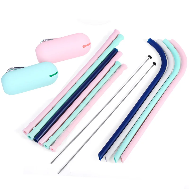 AIHPO08 Amazon, новые идеи товара, 2021 барные инструменты, устойчивые экологически чистые продукты, складной силиконовый чехол для питьевой соломы