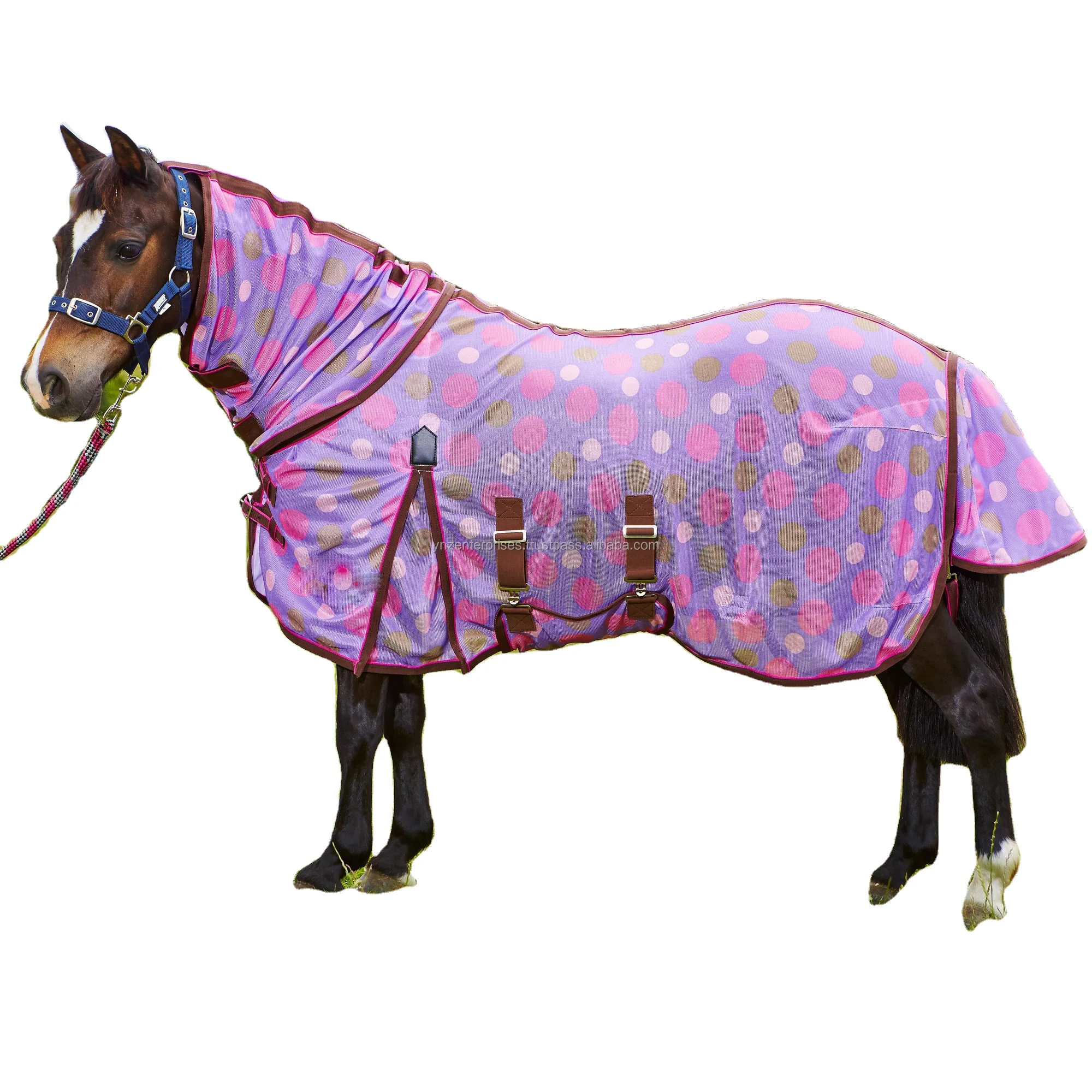 Compactly woven honeycomb fly sheet in supple polyester mesh for total protection against the smallest insects. Features Fur wither protector, shoulder dart. Lined with anti-chafing nylon at chest and tail flap. Double cross surcingle's with rubber stoppers. Dual chest closure with buckles.