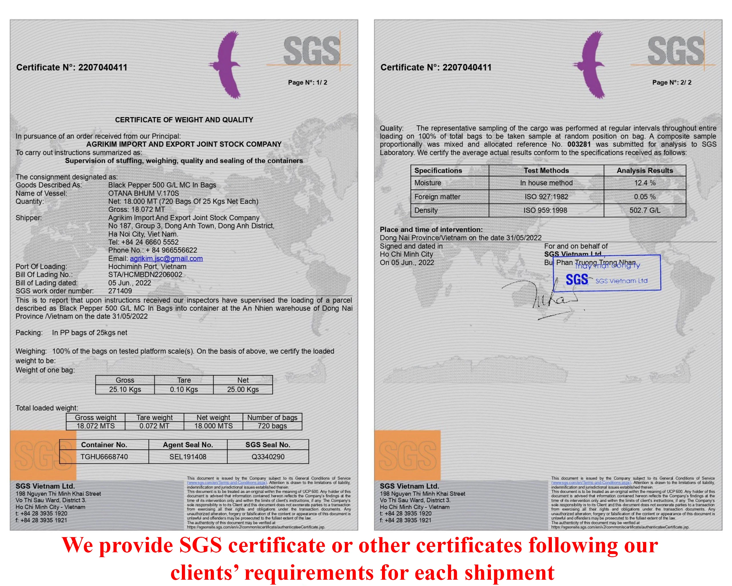 Product name | Black pepper |