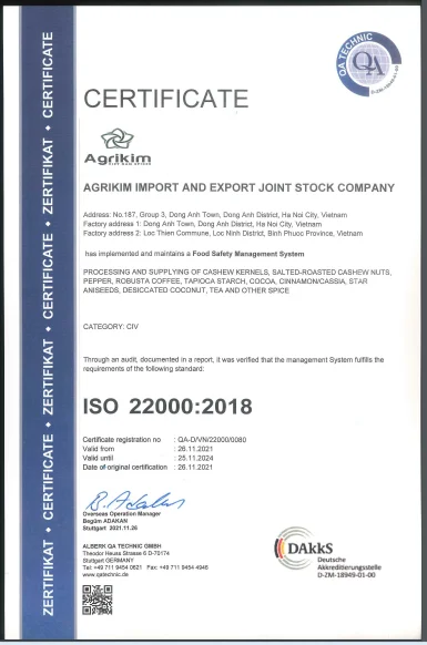 Certification | ISO 22000:2018 |