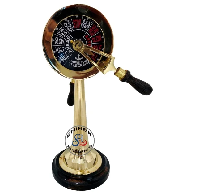 Латунный телеграф морской корабль телеграф 14 дюймов коричневое деревянное основание латунная отделка телеграф ручной работы морской дом Хэллоуин