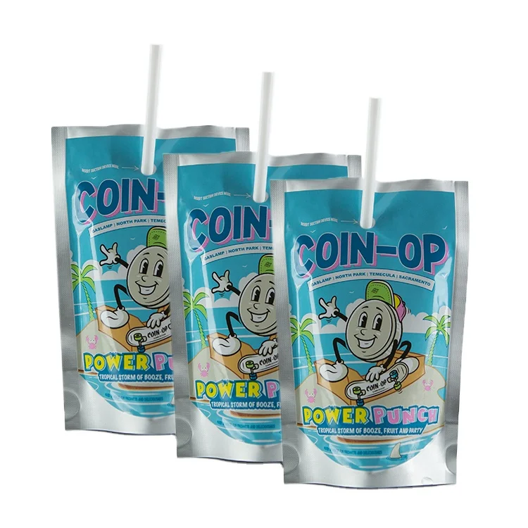 Заводская изготовленная на заказ сумка для соков напитков молнии желе упаковка многоразовые пластиковые пакеты и с отверстием соломы