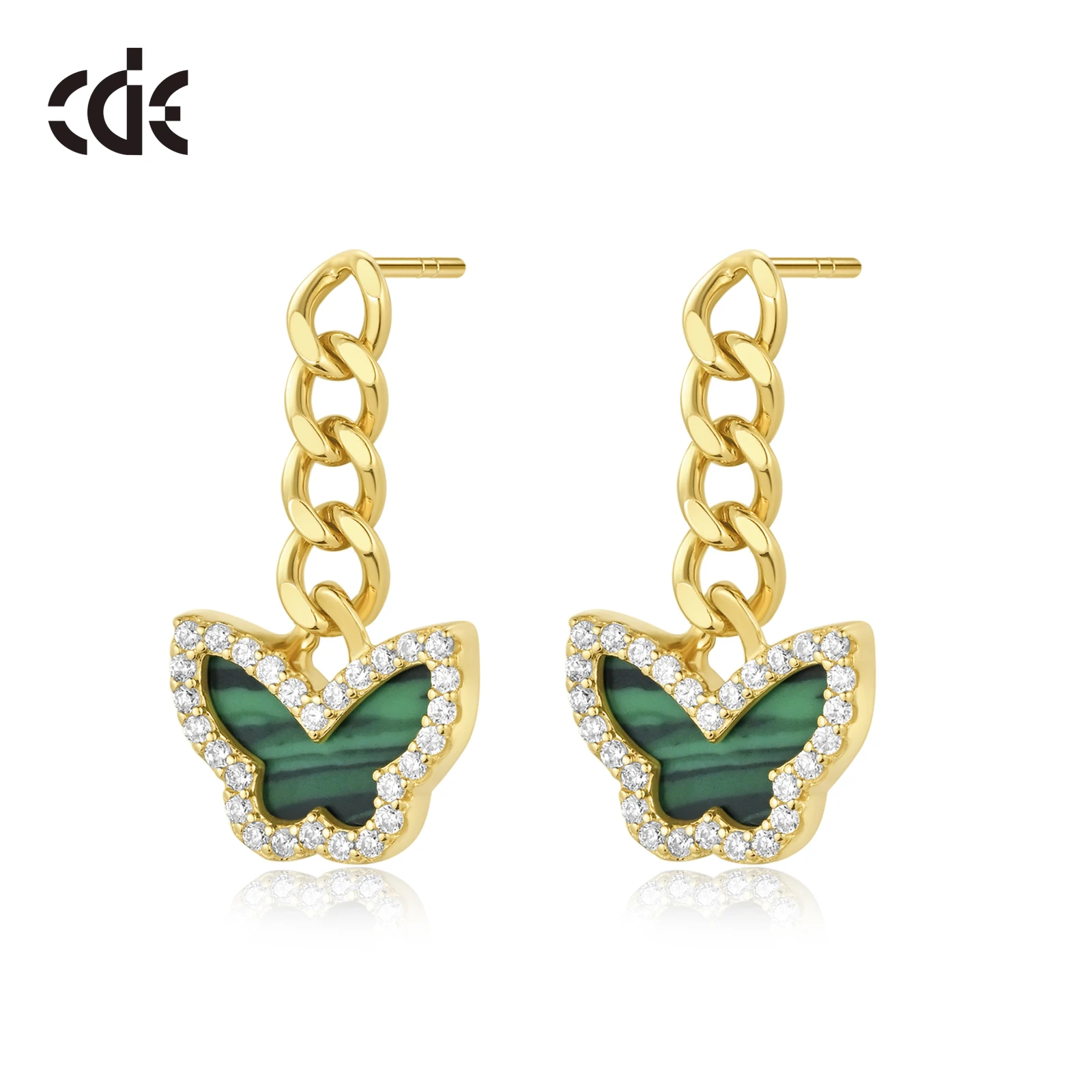 CDE GMYE010 стильные ювелирные изделия 925 стерлингового серебра гипоаллергенные серьги оптом малахитовые кубические циркониевые серьги-бабочки 1 293,94 ₽ - 1 404,34 ₽