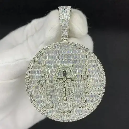 Медальон муассанитовый багет и круглый бриллиантовый кулон на цепочке для подарков доступны по доступной цене