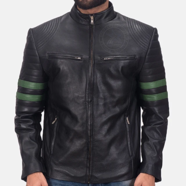 Мужская байкерская куртка из натуральной овчины с черной подкладкой и внутренними карманами