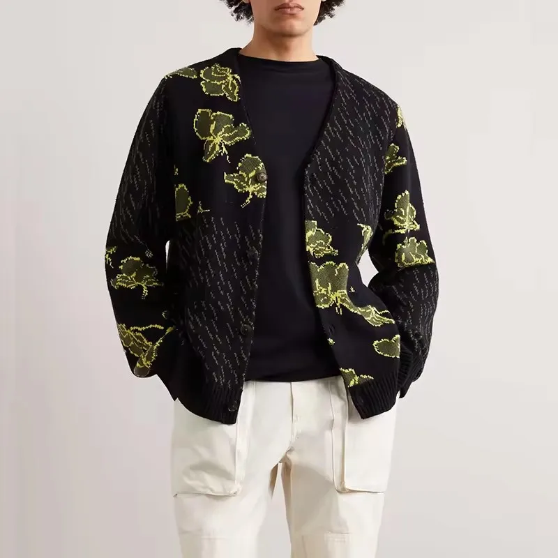 Новый стиль Жаккардовый трикотажный кардиган с V-образным вырезом