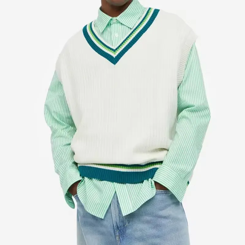 YSYS модная мужская майка с индивидуальным дизайном вязаный свитер жилет из 100% хлопка цветным блокированием студенческий стиль без рукавов V-образным вырезом