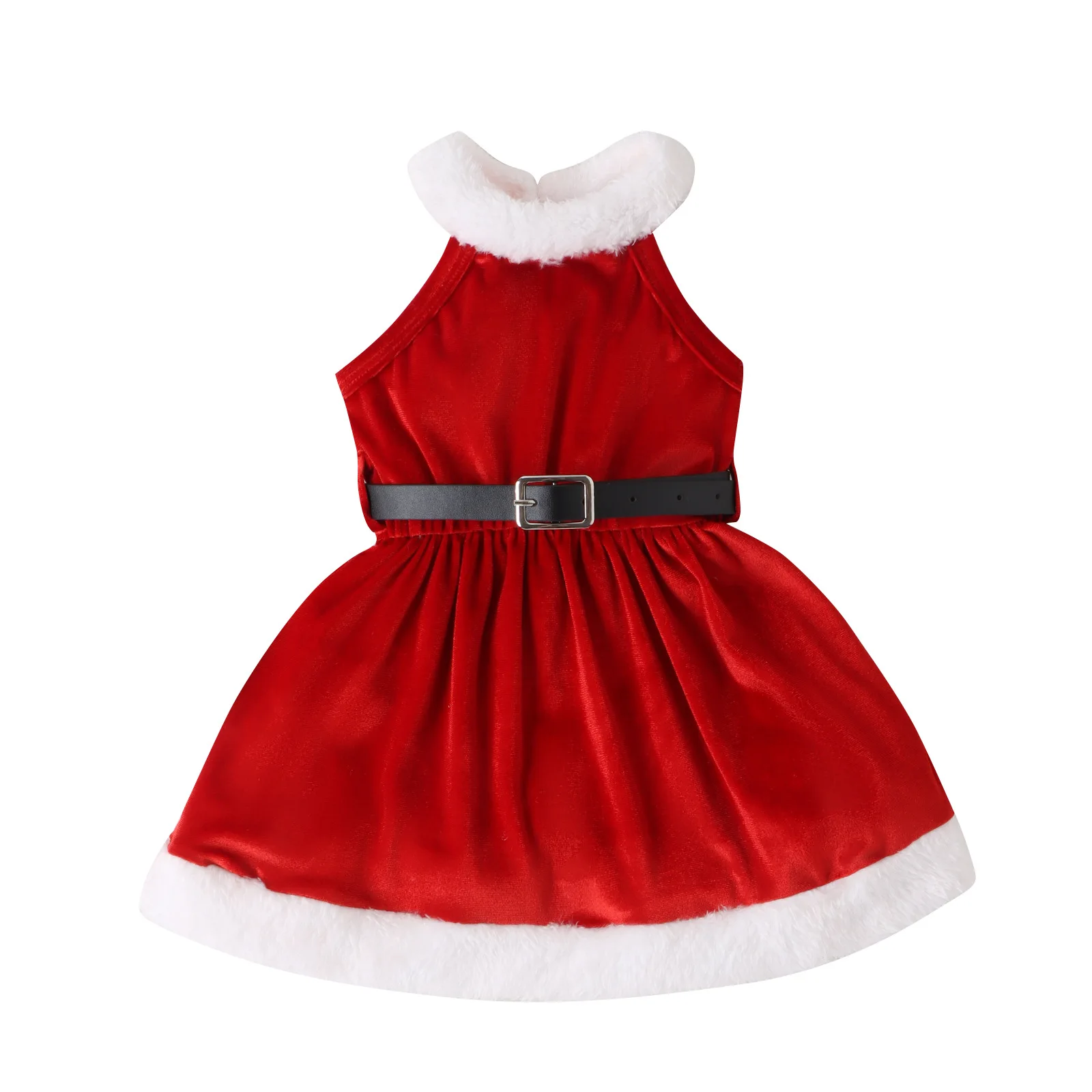 2023 Рождественская одежда бархатный лоскутный сарафан принцессы без рукавов с черным кожаным поясом платье для девочек 501,03 ₽ - 587,77 ₽