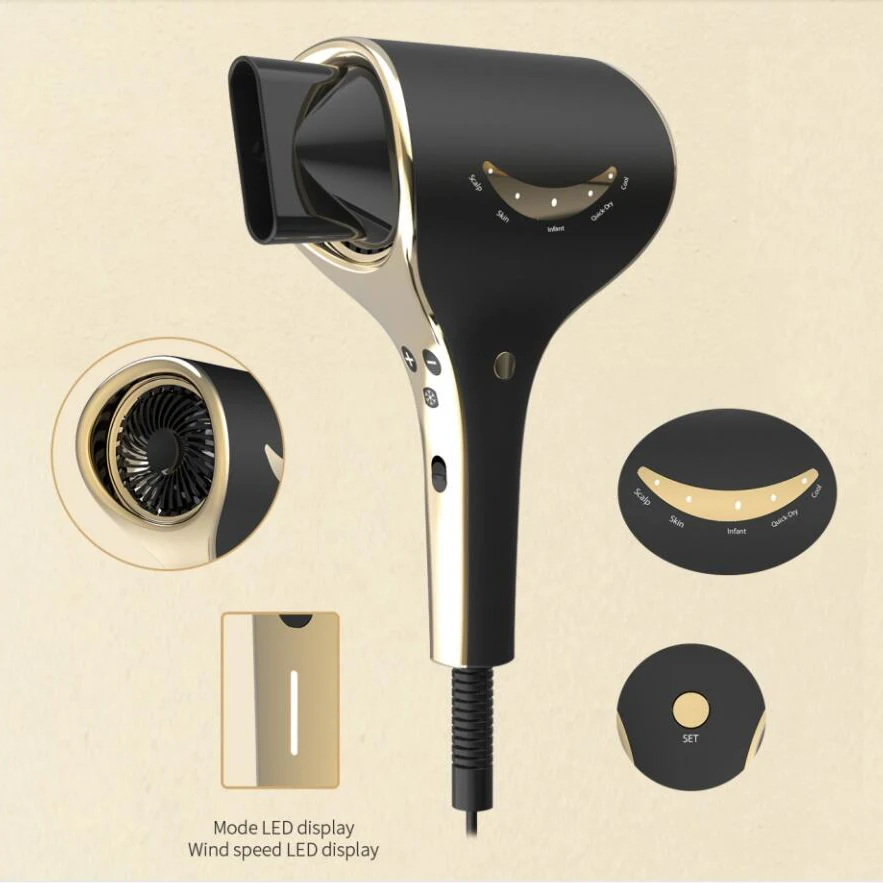 1600W Professional 110000 RPM High Speed Motor Hair Dryer LED Temperature Display BLDC Negative Ionic Blow Dryers 16,80-17,80 $