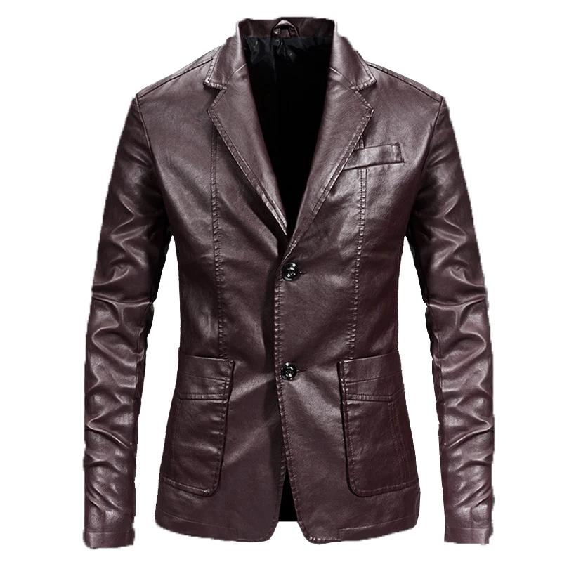 Мужские костюмы Блейзер высококачественный кожаный блейзер для