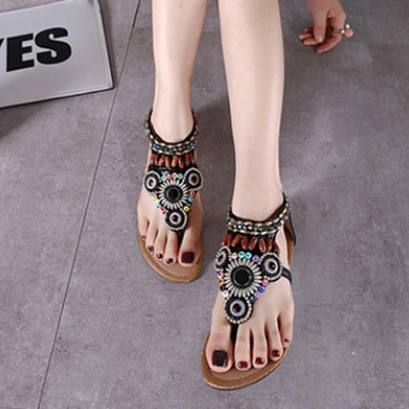 Сандалии женские в этническом стиле богемные удобные легкие тапочки плоская подошва летняя обувь с