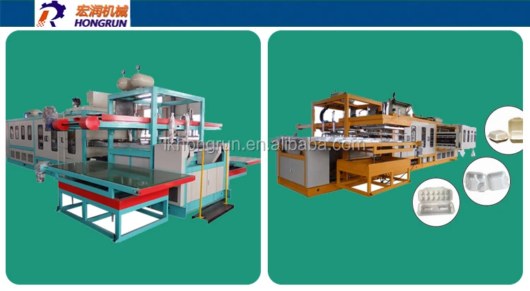 Машина может в основном формирования PSP материал, который используется для производства пищевых контейнеров, поднос, миска, чашки и т. д. формирование, резка, укладка сделаны в той же машине,