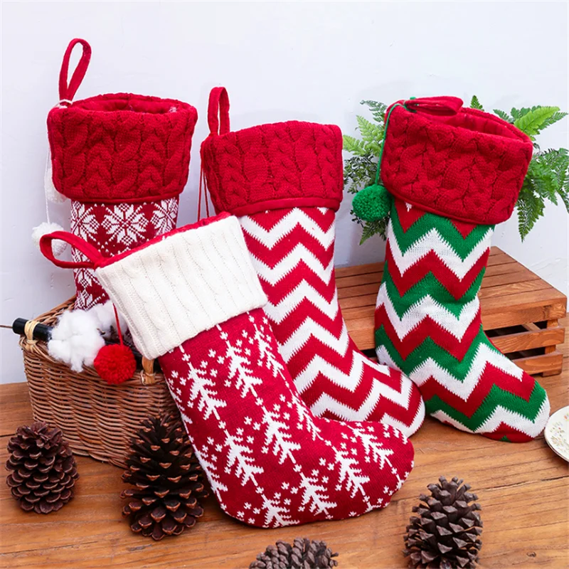 Новые рождественские украшения, вязаные чулки, шерстяные чулки, красный и белый лось, снежинки, украшенные рождественскими подарочными пакетами 194,53 ₽