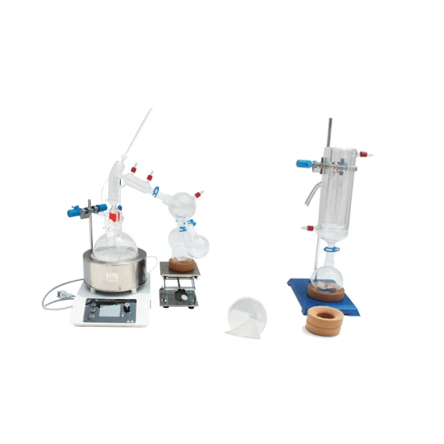 Химическая лаборатория короткий путь стекла дистилляции наборы для университетаЭто процесс разделения компонентов или веществ из жидкой смеси путем селективного испарения и конденсации.