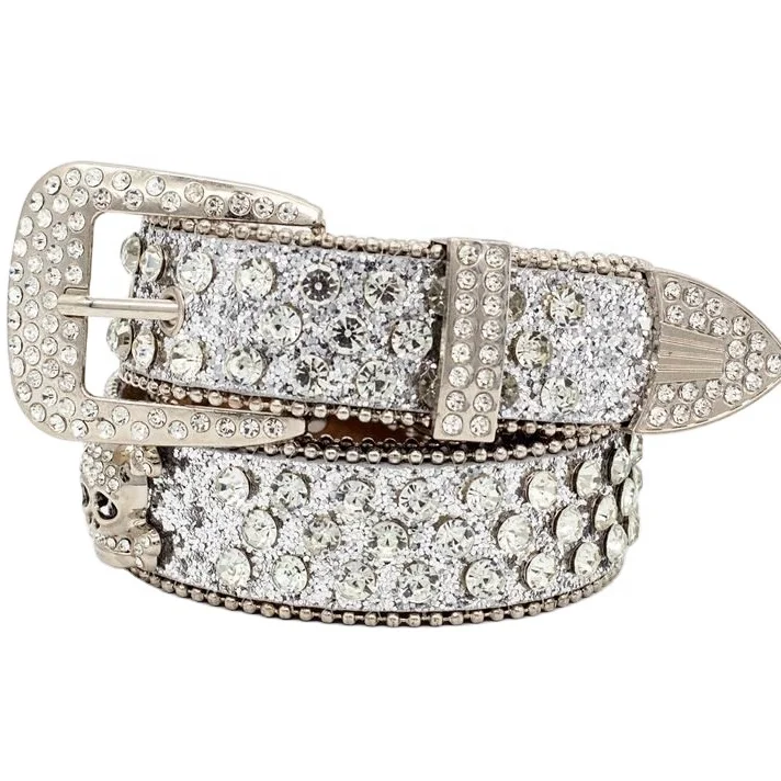 Новый стиль Блестящий PU кожаный ремень с пряжкой из горного хрусталя