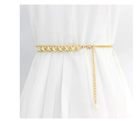 Платье с бисером крючок Женская цепочка на талии в Корейском стиле милые модные свадебные туфли Украшенные жемчугом; Декоративные металлические пояса
