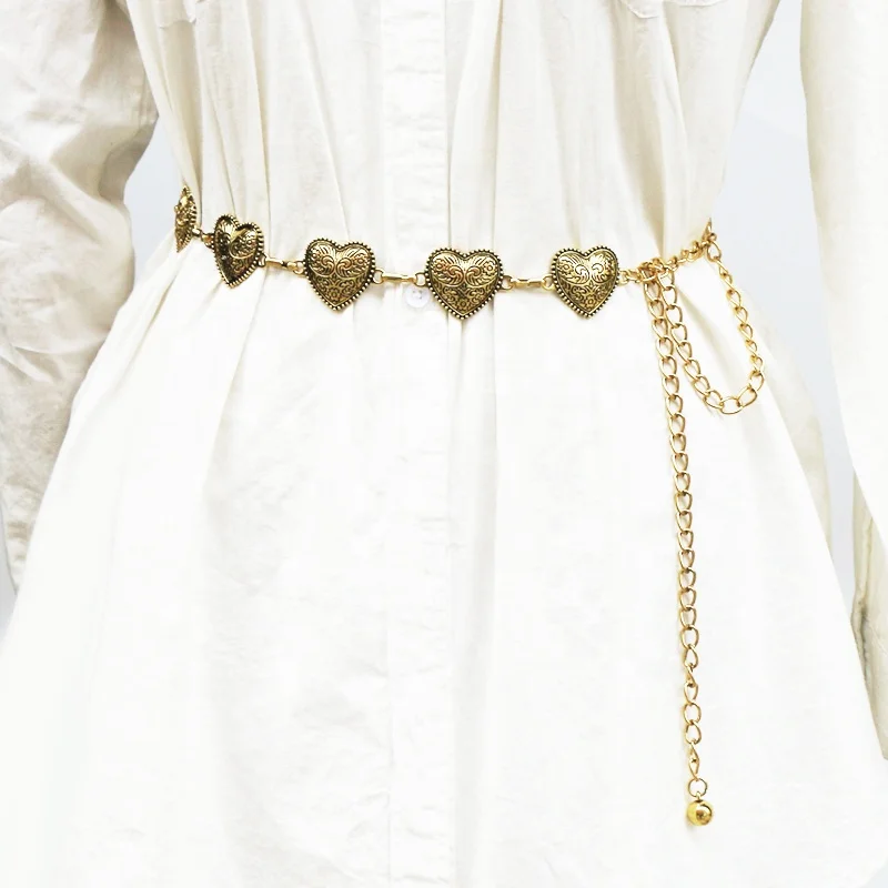 Винтажный удлиненный женский металлический ремень с сердечками и декоративным поясом для брюк