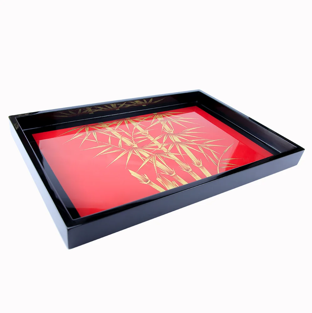 Серый круглый деревянный лаковый поднос из Вьетнама