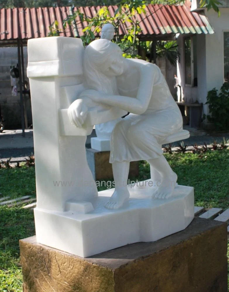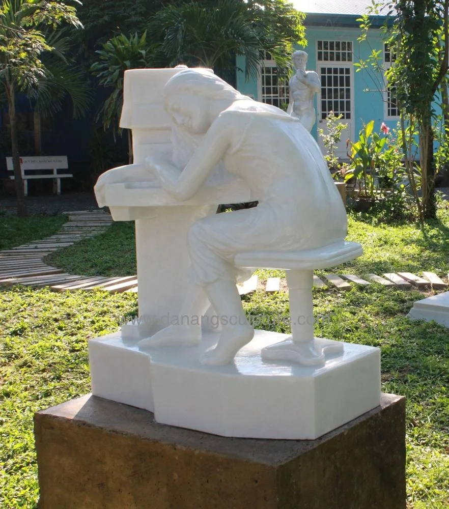 Sculpted from natural solid white marble, the beautiful statue of a young girl sleeping on her piano in classic style is really an artwork. It will be a charming addition to your houses, gardens, villas, buildings, hotels or resorts.