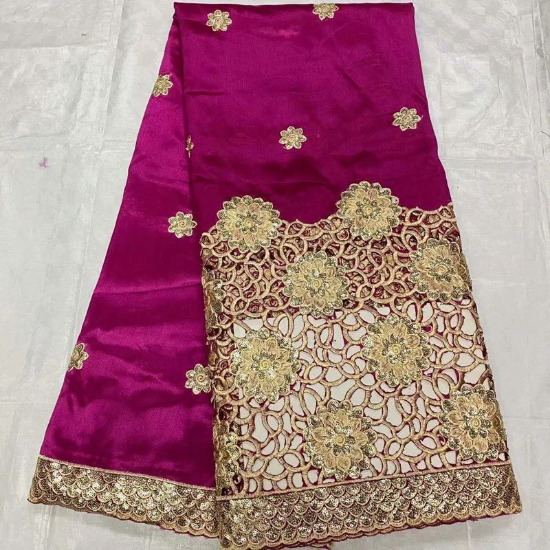 Оптовая продажа африканская ткань с вышивкой из сырого шелка вышитая камнями бисером индийская шелковая кружевная